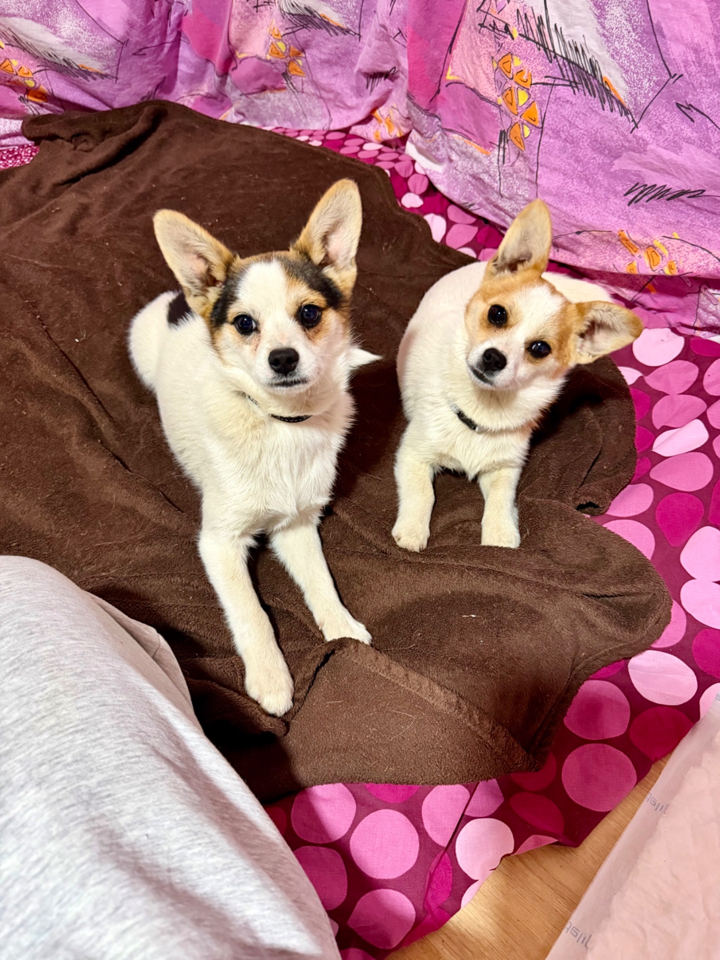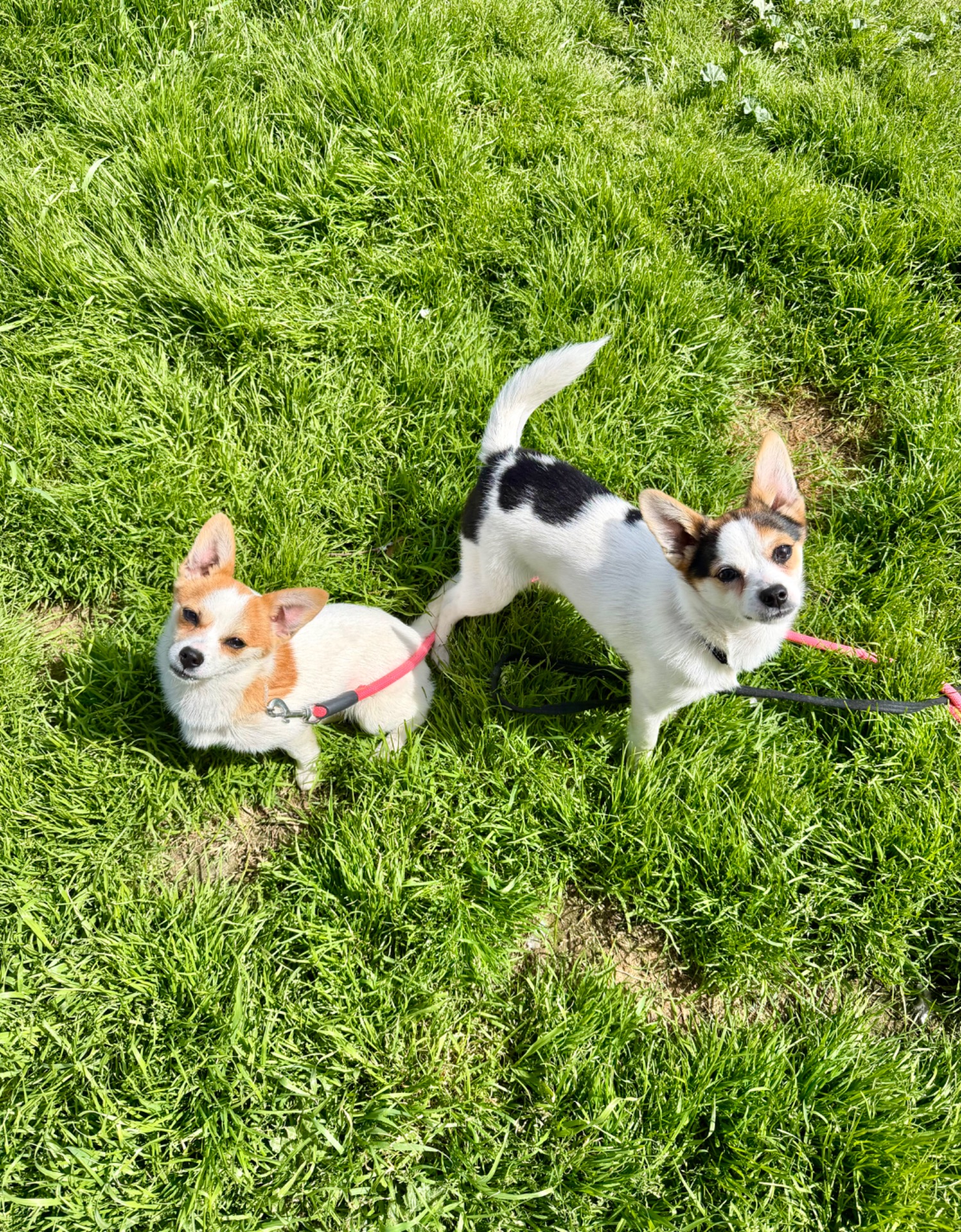 Aún están aprendiendo a gestionar la correa, pero adoran pasear, descubrir, olfatear, y hacerlo TODO JUNTOS. Muy juntos.